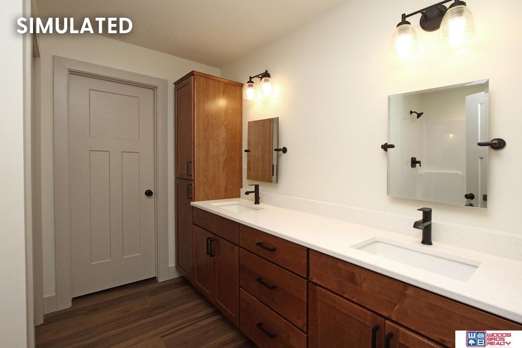 The newly designed ranch by JD Builders Inc. features more than 3,000 finished sq.ft. with 6 bedrooms, 3 bathrooms and 3 stall garage. Space on the main level is efficiently maximized by an open kitchen/living/dining with vaulted ceiling in a great room. The kitchen boasts a center island with breakfast bar, granite countertops with tile backsplash, birch cabinets with crown molding, stainless steel appliances and corner pantry. Primary suite features a bathroom with double sink vanity, tub/shower and walk-in closet. Mudroom with lockers separate the house from the garage. The laundry room is conveniently located on the main level. The finished basement has a rec room, three additional bedrooms, a full bathroom and room for storage. The oversized 3-stall garage has plenty of room for storage. Other features included a 16 x 10 Covered Deck, patio, full Sod, UGS, sump pump and garage door opener.