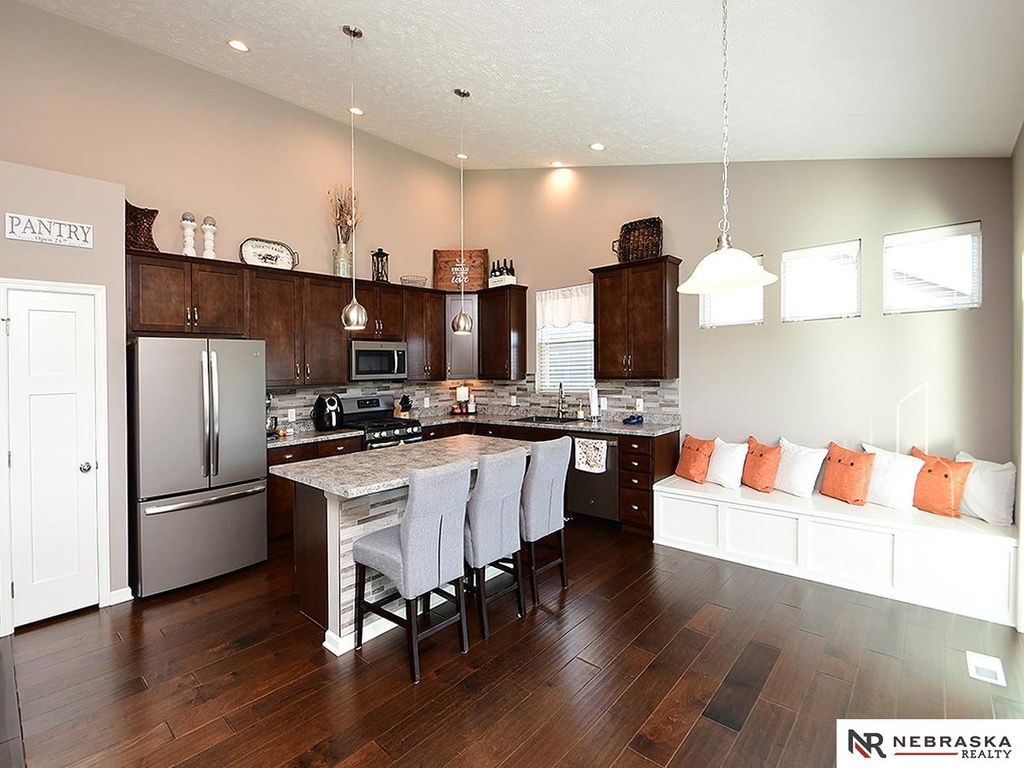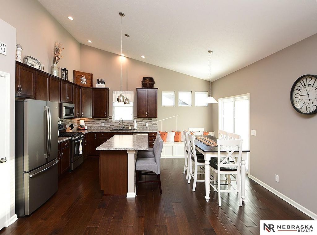 Beautiful curb appeal and a welcoming front porch set the tone for this meticulously maintained one-owner home! A well-landscaped yard and freshly sealed driveway make a great first impression. Inside, the wide-open layout connects the great room, kitchen, and dining area for effortless entertaining. The kitchen shines with tall cabinets, slate appliances, gas stove, and a built-in bench - plus all appliances stay. Split bedrooms offer privacy, main floor laundry adds convenience, and the oversized primary suite boasts extra storage and a spacious walk-in closet. Soaring ceilings and east-facing windows drench the space in natural light. Step outside to a freshly stained deck, large patio with privacy walls, and an amazing lot with sidewalk access to the community green space. With a basement ready for your vision, this home is move-in ready and waiting for its next chapter!